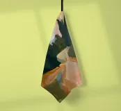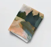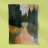 Paesaggio astratto dipinto con verdi profondi e calde tonalità della terra, che suggerisce un tranquillo sentiero nella foresta immerso in una luce soffusa.