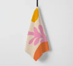 arte botanica astratta, forme moderne di piante, foglie di corallo rosa, illustrazione del sole arancione, sfondo blu pastello, design floreale minimalista, natura astratta contemporanea, grafica fogliare giocosa, opera d'arte dalle forme audaci, stampa ispirata a Matisse, atmosfera moderna tropicale, flora astratta vibrante