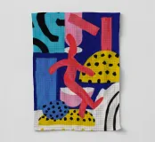 Una vibrante ed energica composizione astratta di una figura danzante in mezzo a una festa di forme e motivi colorati. L'opera è una gioiosa celebrazione del movimento, della musica e della vita.