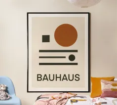 Un'audace composizione astratta con forme geometriche nei toni del rosso, del verde acqua, del grigio e del beige. Il design è semplice e moderno e mette in risalto il contrasto di colori.