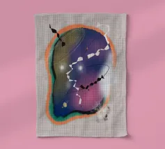 Forme astratte in colori tenui sono collegate tra loro da sottili linee nere, creando una composizione dinamica. Il disegno incorpora varie forme geometriche e organiche, aggiungendo un senso di equilibrio e movimento.