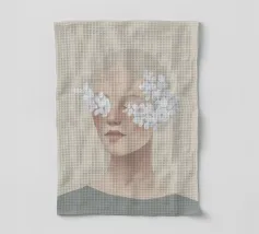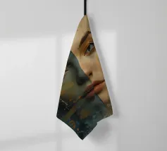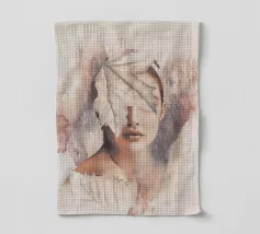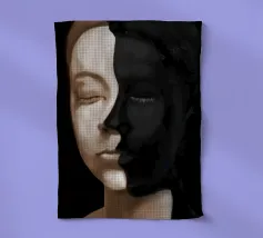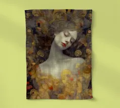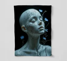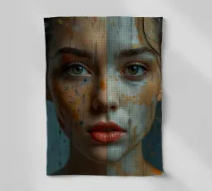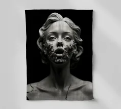Un'opera d'arte moderna ed espressiva che mostra una figura femminile di profilo, metà umana e metà pietra. Le sottili transizioni tra pelle e struttura simboleggiano profondità emotiva, fragilità e forza allo stesso tempo. La combinazione di colori neutri, beige e grigi, conferisce all'immagine calma ed eleganza, perfetta per ambienti moderni, minimalisti e profondi.