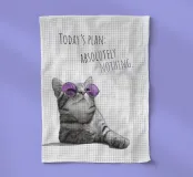 Questo spiritoso motivo a gatto è perfetto per chi celebra il dolce far niente o semplicemente ha bisogno di un piccolo promemoria per rilassarsi di più nella vita di tutti i giorni. Il simpatico gatto con gli occhiali da sole color porpora dona immediatamente buon umore a qualsiasi ambiente. Il design moderno e minimalista colpisce per le sue linee chiare, i colori tenui e l'accento di colore specifico negli occhiali; elegante, attento alle tendenze e meravigliosamente semplice. Un'attrazione per tutti coloro che amano l'umorismo, il design e i gatti o che vogliono semplicemente godersi una giornata pigra.