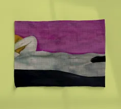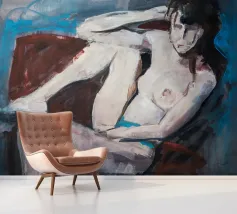 l suo espressivo dipinto ad acrilico cattura una figura nuda reclinata su un divano rosso intenso, circondata da toni freddi di blu e grigio. La composizione esplora il contrasto tra comfort e vulnerabilità, invitando gli spettatori a entrare in un momento di intimità. Con pennellate decise e tratti astratti, l'opera si concentra meno sulla somiglianza e più sull'emozione, la presenza e la tranquilla tensione dell'essere visti. È uno studio di forme, gesti e atmosfere, un ritratto di immobilità, forza e tranquilla introspezione.