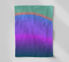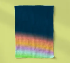 Questa delicata illustrazione mostra un arcobaleno in colori pastello con morbide sfumature di colore dall'azzurro al rosa, al giallo pastello e al verde chiaro. Le linee geometriche e le strisce strutturate danno un tocco moderno all'opera grafica e riflettono la natura. Un gioco armonioso di colori che irradia calma e gioia.