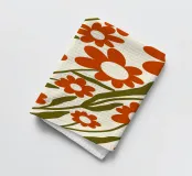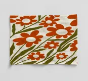 Una gioiosa esplosione di energia vintage: i vivaci fiori arancioni e le foglie verdi catturano l'atmosfera libera degli anni '60. Questo design floreale vivace dona un tocco retrò e un'atmosfera da metà del secolo scorso a qualsiasi interno moderno.