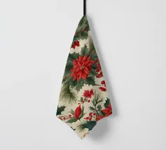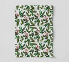 Pattern di elementi natalizi come pigne, agrifoglio, vischio ed eucalipto.
