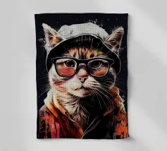 Un allegro gatto con gli occhiali è raffigurato con la frase "Parlo correntemente... Sarcasmo". L'espressione e il testo suggeriscono un tono umoristico e spiritoso.
