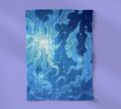 Questo ipnotico disegno astratto presenta motivi vorticosi di morbide tonalità turchesi e bianche, evocando un senso di tranquillità e mistero.