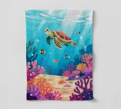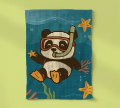 Simpatico orso con occhiali da sub che nuota nel mare. Scena subacquea giocosa con coralli e stelle marine. Perfetto per disegni per bambini, prodotti estivi e illustrazioni marittime.Orso allegro con maschera da snorkeling Mondo sottomarino colorato con sole Design infantile e giocoso Ideale per motivi estivi, marini e animali Perfetto per poster, abbigliamento...
