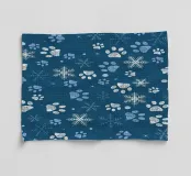 Impronte di zampe con fiocchi di neve su sfondo blu. Disegno di tessuto senza cuciture. Buon anno, inverno, bambini modello di design tessile