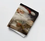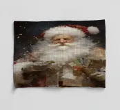 Un dipinto festivo pieno di magia natalizia: Babbo Natale con il suo sorriso raggiante porta tra le braccia regali amorevolmente incartati. La neve turbina nell'aria e conferisce alla scena un'atmosfera vivace e invernale. I colori caldi e i dettagli raffinati catturano magnificamente la gioia e la magia del periodo natalizio.