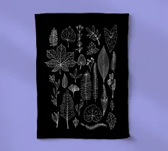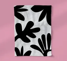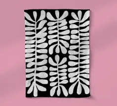 Questa opera d'arte con motivo a foglie in bianco e nero è un pezzo di grande impatto visivo. L'opera presenta un motivo ripetuto di forme e disposizioni di foglie stilizzate. L'artista (kathrinmay) ha utilizzato il contrasto dei due colori per creare un senso di equilibrio.