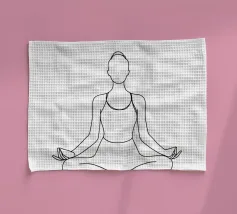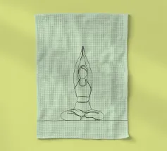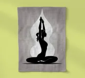 La silhouette di una donna seduta in meditazione con l'energia bianca che scorre intorno a lei. Il contrasto tra luce e buio riflette la consapevolezza e la chiarezza spirituale: perfetto per gli studi di yoga o per le case serene.