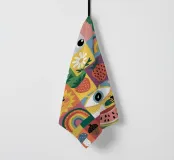 Un motivo allegro e giocoso di varie icone simpatiche e colorate, tra cui arcobaleni, cactus, occhi e frutta. Il mix eclettico crea un disegno divertente, energico e stravagante.