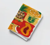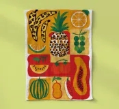 Una composizione vivace e generosa di vari frutti tropicali stilizzati come ananas, papaya e anguria. L'opera d'arte è una celebrazione colorata e gioiosa delle dolci offerte esotiche della natura.