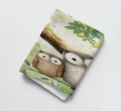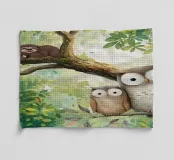 Un'affascinante scena di una mamma gufo che coccola il suo piccolo in una vivace giungla tropicale. Questo dolce disegno faunistico dona calore e un delicato tocco di natura a qualsiasi ambiente.