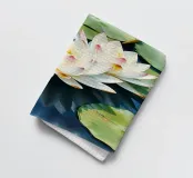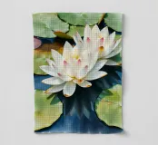 Questo elegante e sereno acquerello cattura la delicata bellezza di due ninfee bianche e rosa che galleggiano pacificamente su uno stagno blu intenso. I petali morbidi e stratificati dei fiori sono messi in risalto dalla calda luce del sole, proiettando ombre delicate che creano un senso di profondità e tranquillità. Le ninfee verdi circondano i fiori e i loro riflessi scintillano sulla superficie dell'acqua calma. Questo pezzo evoca una sensazione di pace e armonia naturale, rendendolo un'aggiunta perfetta a qualsiasi spazio che cerchi un tocco di calma ed eleganza naturale.