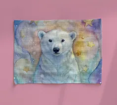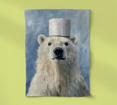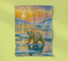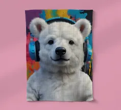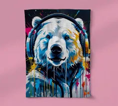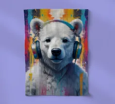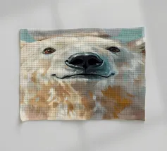 Orso polare che tiene la macchina fotografica con pittura fauvismo stile arte