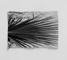 Palma botanica in bianco e nero in un parco di Marrakesh, Marocco.