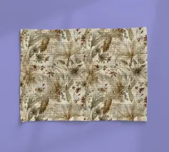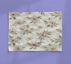 Uno splendido motivo floreale acquerellato con fiori color corallo, pesca e salmone e foglie verde salvia su un caldo sfondo crema.