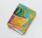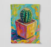 Piccolo cactus in vaso a forma di cubo con pittura fauvismo stile arte