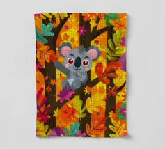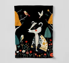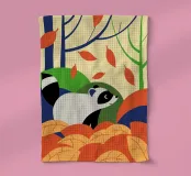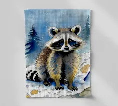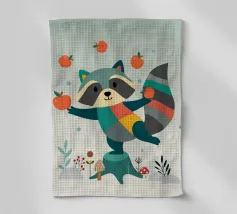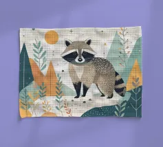 Godetevi una vivace illustrazione naturalistica con un procione in una scena autunnale con foglie che cadono.