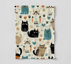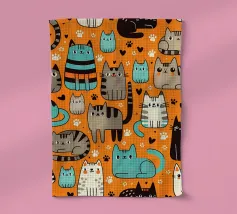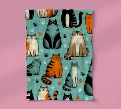 Un divertente e colorato disegno di gatti con giocosi felini color arcobaleno in un design vivace e stravagante. Perfetto per gli amanti dei gatti, per i proprietari di animali e per tutti coloro che amano le decorazioni vivaci e allegre. Questo vivace motivo aggiunge un tocco di allegria e spensieratezza a qualsiasi spazio, rendendolo ideale per accoglienti complementi d'arredo, camere per bambini e pezzi unici. Creato da showmemars