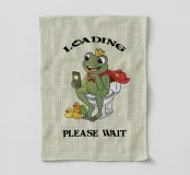 Un allegro principe ranocchio si gode la sua pausa regale, scorrendo sul suo telefono mentre è seduto sul trono del gabinetto. Circondato da papere di gomma colorate e con un mantello rosso, questa giocosa opera d'arte unisce umorismo e fascino. Perfetto per aggiungere un tocco eccentrico a bagni o spazi spensierati con un divertente tocco moderno.