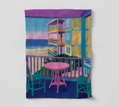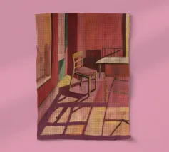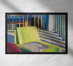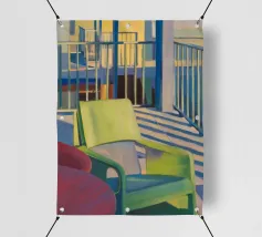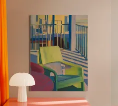 Un balcone assolato reso con luci e ombre drammatiche, dove il silenzio parla più delle parole grazie a una composizione minimalista.