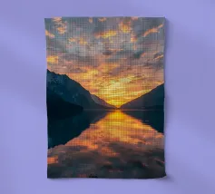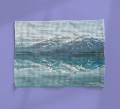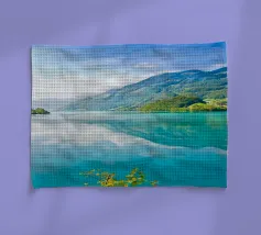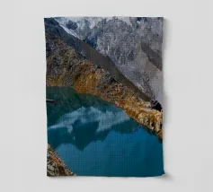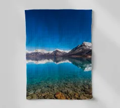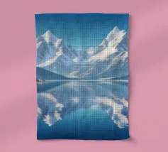 Un cielo azzurro e limpido si riflette perfettamente in un lago sereno circondato da maestose montagne innevate. Questa splendida scena cattura l'essenza della bellezza e della tranquillità della natura.