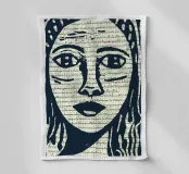 Ritratto femminile tra linee calligrafiche, la particolarità di questa linoleografia è che è stampata sulla pagina di un libro del 1850 che ho trovato in un mercatino delle pulci (che evoca varie calligrafie antiche). Mi ha subito ispirato e l'ho conservato per diversi anni come un tesoro, volendo condividerlo con gli amanti delle opere antiche e contemporanee.