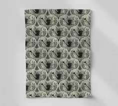 Un motivo ripetuto presenta forme geometriche nere su uno sfondo grigio chiaro, creando un design ritmico e visivamente accattivante. Le forme sono uniformemente distanziate e contribuiscono a creare un senso di ordine ed equilibrio.