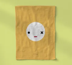 Un volto semplicistico e astratto è disegnato con linee nere decise e presenta una stella gialla sulla fronte. L'espressione è minimale, con piccoli punti per gli occhi e una linea retta per la bocca.
