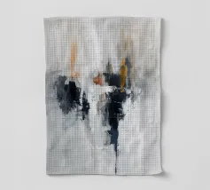 Questo dipinto astratto presenta tonalità di crema, blu e nero con molti segni intricati. Questo pezzo di lusso senza sforzo può essere il punto di riferimento perfetto per le vostre pareti o elevare istantaneamente i vostri articoli per la casa, gli accessori o l'abbigliamento.
