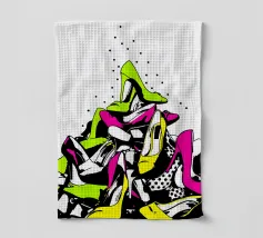 Uno schizzo minimalista ma espressivo di eleganti tacchi alti abbinati ad audaci gocce di colore. Questa opera d'arte di tendenza celebra lo stile femminile con un tocco astratto.