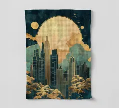 Grattacieli stilizzati dai colori intensi per un'immersione grafica nello skyline moderno. Questo poster rende omaggio all'architettura verticale e al ritmo delle grandi città, con la sua combinazione di potenza architettonica ed eleganza minimalista.