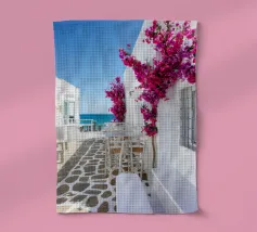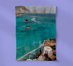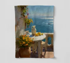 Fuggite nella splendida bellezza della Costiera Amalfitana con questa fotografia mozzafiato di un balcone soleggiato a Sorrento, in Italia. Affacciata sulle scintillanti acque turchesi, la vista cattura l'essenza del paradiso mediterraneo. Immersa nella luce dorata del sole, l'immagine invita a rilassarsi e a godersi la tranquillità della scena, con i suoi incantevoli balconi a terrazza e la vegetazione lussureggiante. Perfetta per chi sogna una fuga in costiera, questa immagine porta la bellezza calda e disinvolta delle giornate estive di Sorrento direttamente a casa vostra.