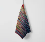 Questa suggestiva opera d'arte astratta, "Vibrant Spectrum", cattura un gioco dinamico di colori e movimento. Linee verticali di larghezza variabile in una ricca tavolozza di blu intensi, arancioni infuocati, rosa brillanti e gialli tenui creano una trama ritmica, quasi intrecciata. Audaci e gestuali tratti neri attraversano la tela, interrompendo le linee ordinate e aggiungendo un elemento di energia grezza e spontaneità. Questo pezzo è una dichiarazione moderna e sofisticata, perfetta per aggiungere un tocco di colore e interesse visivo a qualsiasi spazio abitativo contemporaneo, ufficio o parete della galleria.