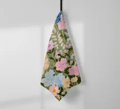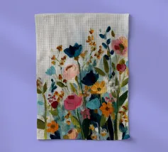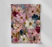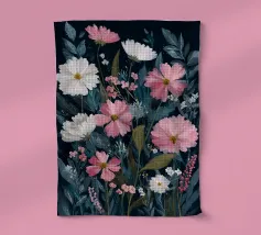 Un romantico arazzo di fiori rosa tenue, lilla e bianchi stratificati con una sottile vegetazione. Perfetto per creare un'atmosfera sognante e femminile in qualsiasi spazio.