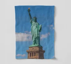 Questa affascinante fotografia in bianco e nero mostra l'iconica Statua della Libertà contro l'imponente skyline di Manhattan, simbolo di libertà e democrazia. Con un design elegante, l'opera d'arte combina l'estetica moderna con la bellezza senza tempo di questo famoso simbolo e aggiunge un tocco di raffinatezza a qualsiasi ambiente.