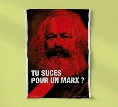 Marx e Monet come non li avete mai visti prima: abbinati a giochi di parole in un'ottica erotica. Le menti dietro queste stampe ironiche sono Fists et Lettres, un duo di designer parigini con un passato nella direzione artistica e nel copywriting pubblicitario. Nessun grande pensatore o creatore è immune dai loro azzardati giochi di parole in francese, che sovrappongono a ritratti classici in grassetto, adornando stampe murali, articoli di cancelleria e accessori con una risata e un ammiccamento.
