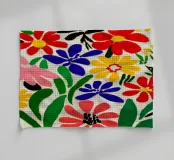 Questa vibrante opera d'arte floreale, nello spirito di Matisse, cattura la gioia dei colori vivaci e delle forme semplificate. Fiori rossi, gialli, blu, rosa e viola si sovrappongono su uno sfondo chiaro, creando contrasti dinamici ed energia giocosa. Le forme piatte e le pennellate espressive ricordano i ritagli modernisti, pur rimanendo fresche e contemporanee. Perfetto per aggiungere un'atmosfera vivace e artistica a qualsiasi interno, questo pezzo porta il fascino dell'estate in casa e trasforma le pareti con una vibrazione retrò ispirata all'arte moderna senza tempo.