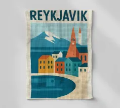 Una ventata di aria fresca attraversa Stoccolma con questo poster dai vivaci colori pop. La torre del municipio, le barche a vela, le isole e persino una tipica bicicletta sono tutti stilizzati in un cocktail di rosa, blu e giallo che celebra lo spirito creativo e naturale della capitale svedese. Una città d'acqua, di architettura e di dolcezza scandinava.