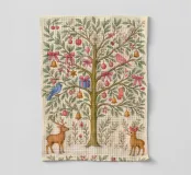 Un magico albero di Natale rosa pieno di sogni pastello: delicati cerbiatti, uccellini canterini, campanelle dorate e fiocchi rosa portano un dolce fascino festivo alla vostra casa. Ispirata ai libri di fiabe d'epoca e all'arte botanica, questa stravagante illustrazione unisce calore, natura e nostalgia. Perfetta per salotti accoglienti, camerette o come stampa murale per le vacanze senza tempo.