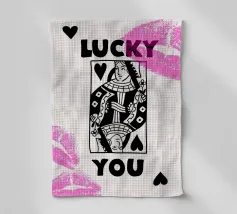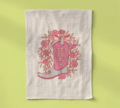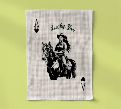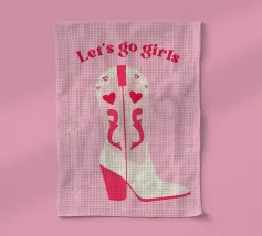 Una donna stilizzata che indossa un cappello da cowboy e occhiali da sole a forma di cuore è collocata su uno sfondo con cactus e cuori. La frase "Stuck On You" è ben visibile.