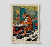 Tiger Diner - Poster pop art retrò con tigre in un bar Una tigre siede tranquillamente in un diner americano - forte, surreale e affascinante allo stesso tempo. Il motivo gioca con i contrasti tra natura selvaggia e vita quotidiana, retrò e moderno. I colori ricchi, il fascino degli anni '60 e il sottile umorismo fanno di "Tiger Diner" un vero e proprio pezzo forte. Perfetto per gli amanti del design che apprezzano l'arte con carattere e una strizzatina d'occhio.