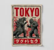 Una decostruzione ironica dei miti pop-culturali dell'orrore: nello stile di una linoleografia stampata a mano, l'opera combina l'estetica retrò dei vecchi manifesti giapponesi dei film di serie B e il fascino rustico della tradizione americana della xilografia. Godzilla e King Kong, i titani della distruzione, non sono qui in battaglia, ma in una posa assurda e amichevole, brindando con tazze rosse. La texture ruvida e le linee marcate danno energia all'immagine. Una dichiarazione audace e umoristica per i collezionisti che amano la forza grafica con un tocco di cultura pop.
