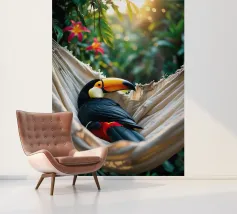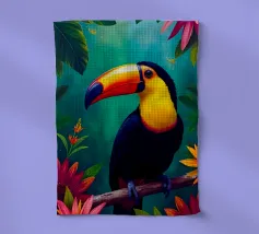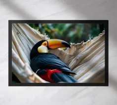 Con il suo iconico becco e la sua posa rilassata, questo tucano sembra nato per la vita sull'amaca. Porta colore e calma, sia che lo appendiate in giardino che in un angolo soleggiato. Una stampa estiva che ricorda che anche il dolce far niente è un talento.