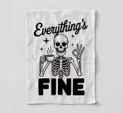 Quando tutto va male, ma si continua a sorridere (o almeno a dare l'illusione di sorridere). Questo scheletro che sorseggia il suo caffè in modalità zen, con il messaggio "Everything's Fine", è la perfetta incarnazione dell'umorismo nero e dell'ironia quotidiana. Perfetto per gli amanti del sarcasmo grafico, del caffè salvavita e dell'atteggiamento "tutto va bene", anche quando le cose sono caotiche. Un design divertente, cinico e ultra-elegante.